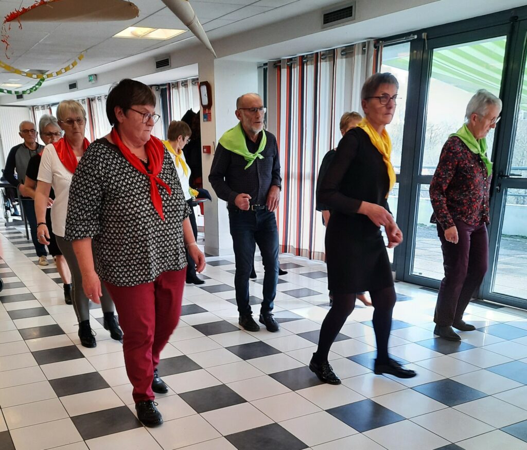 Direction Guignen au le club de l’amitié de la commune, présidé par Jean-Pierre Renaudin, située dans le département d’Ille-et-Vilaine (35). Dans le cadre des animations proposées par le club à destination des Ehpad, la section “danse en ligne” a souhaité se mobiliser pour faire découvrir et partager l’amour de la danse avec les résidents. Cette initiative consiste en des interventions régulières sous forme de démonstrations et d’ateliers participatifs, permettant aux personnes âgées de s’immerger dans l’univers de la danse tout en s’amusant.