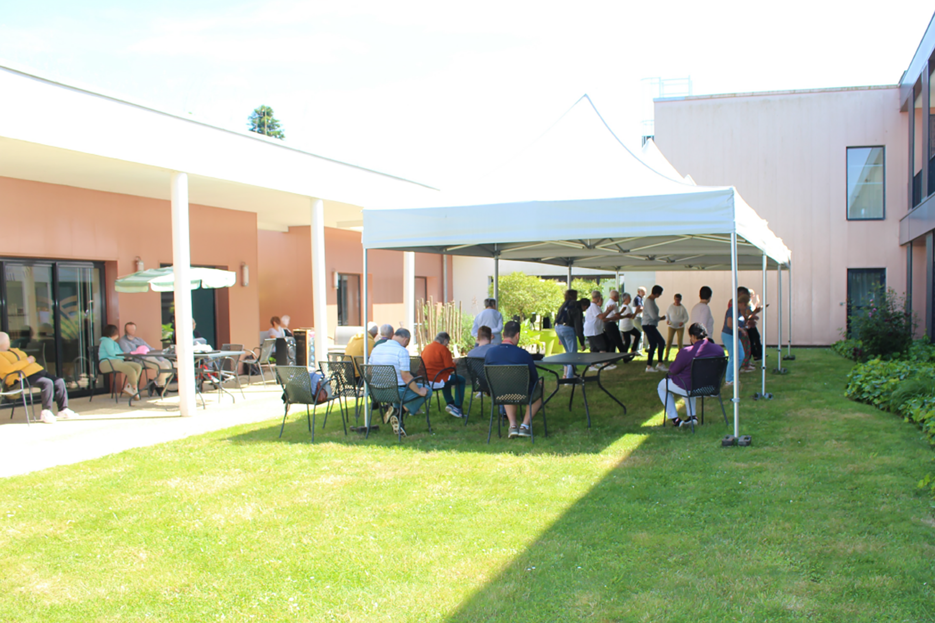 Les ateliers participatifs offrent aux résidents l’opportunité de se joindre aux danseurs et danseuses, adaptés à leurs capacités et envies. Les animateurs de la section les accompagnent en leur enseignant les pas de base, ajustant le rythme et la difficulté pour que chacun puisse participer à son niveau. Même les personnes à mobilité réduite sont incluses, pouvant effectuer des mouvements avec les mains ou les pieds, garantissant ainsi que la danse soit accessible à tous.