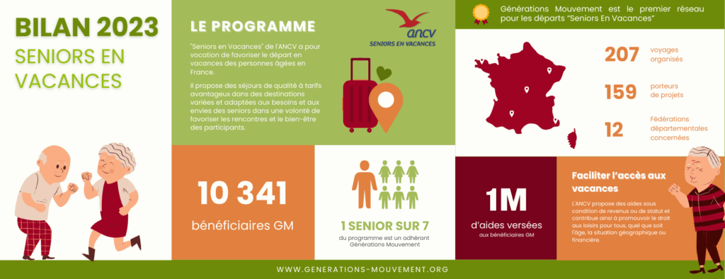 Depuis 15 ans, l’ANCV est un partenaire important de Générations Mouvement dans la promotion des vacances pour tous. En parfaite adéquation avec notre public et nos valeurs, c’est tout naturellement que le programme “Seniors en vacances” a su trouver sa place, avec de plus en plus de porteurs de projets parmi nos associations.
